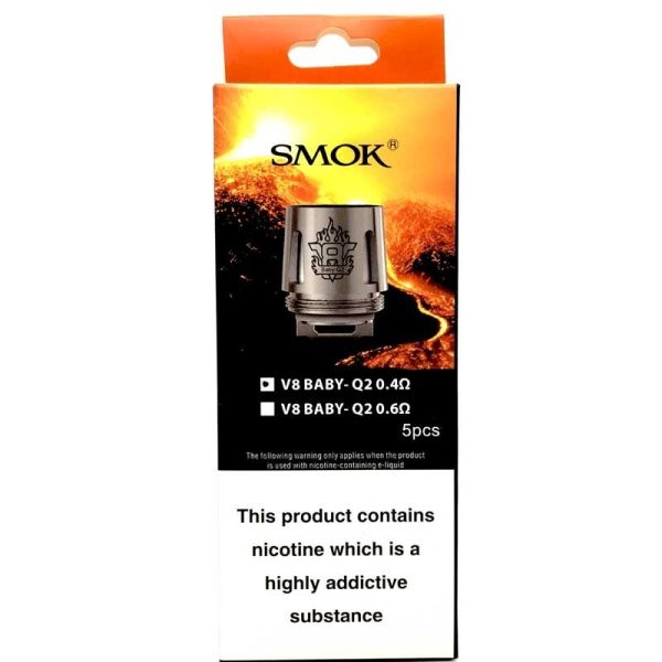 0.4ohm Dual Coils, 40-80w/ best 55-65w, to you the best flavour vape possible, for use with the SMOK V8 baby tank