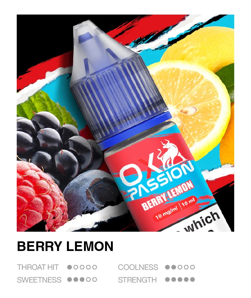 Ox Passion Berry Lemon 10ml Nic Salts. This exciting range of nic salts by Ox Passion, the sister company of the popular device maker Oxva.