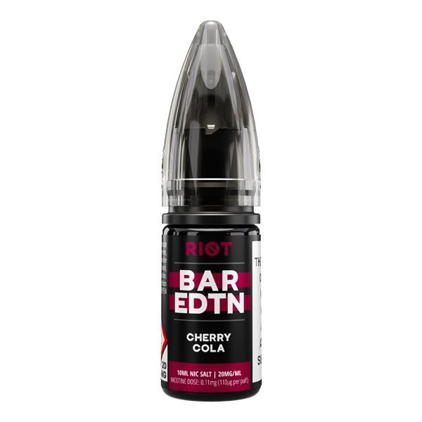 Cherry Cola Riot Bar Edtn 10ml salt 10mg + 20mg Just Like The Sweet & Refreshing Drink, Immerse Yourself Into A Fruity Cola Flavour E-Liquid That Sends You Deep Into The Sweet Notes Of A Delicious Cherry Coke Drink.