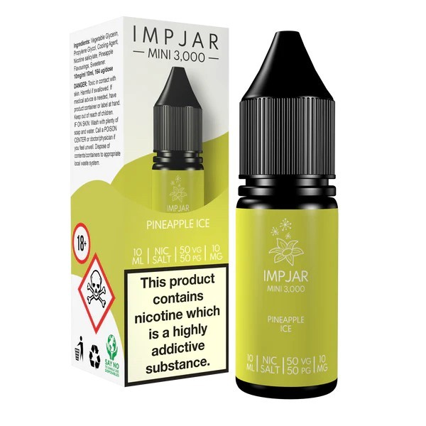 Pineapple ice Nic Salts in 10mg and 20mg MADE IN THE UK by IMP JAR it’s an elf bar in a vape! Get that same satisfying hit but at 1/6 of the price!