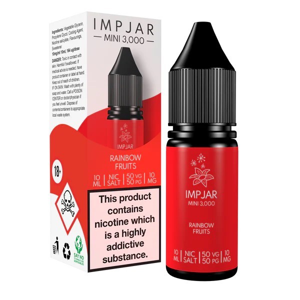 Rainbow Nic Salts in 10mg and 20mg MADE IN THE UK by IMP JAR it’s an elf bar in a vape! Get that same satisfying hit but at 1/6 of the price!