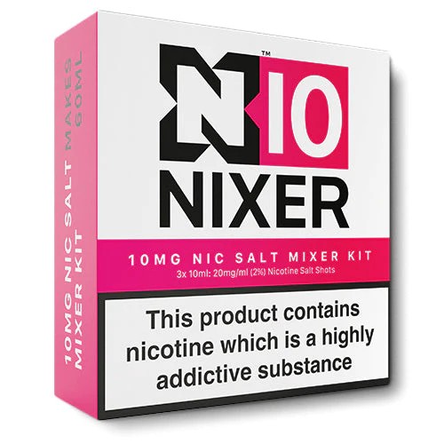 - Nic Salt N10 Mixer Kit = 60ml of 10mg nic salt e-liquid (50% VG)